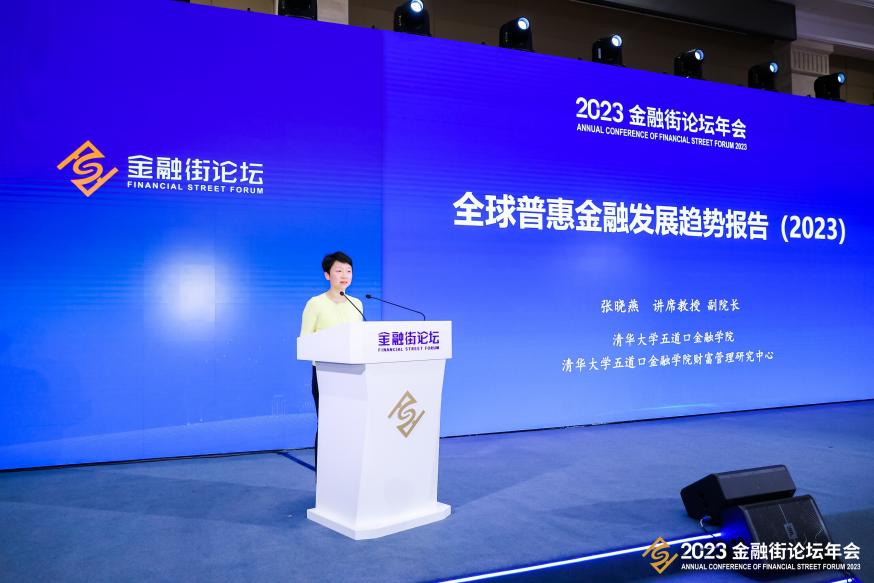 副院长、财富管理研究中心主任、金融学讲席教授张晓燕受邀发布研究成果《全球普惠金融发展趋势报告(2023)》(以下简称《报告》)。