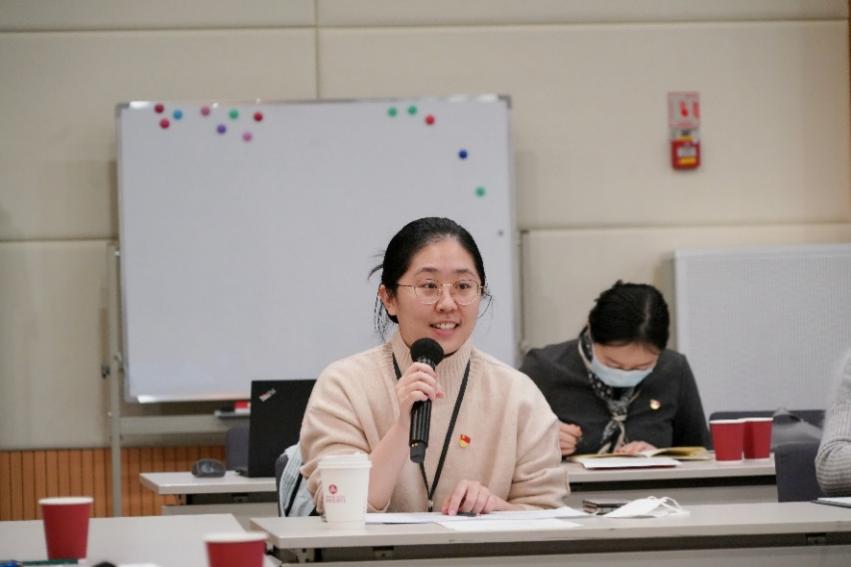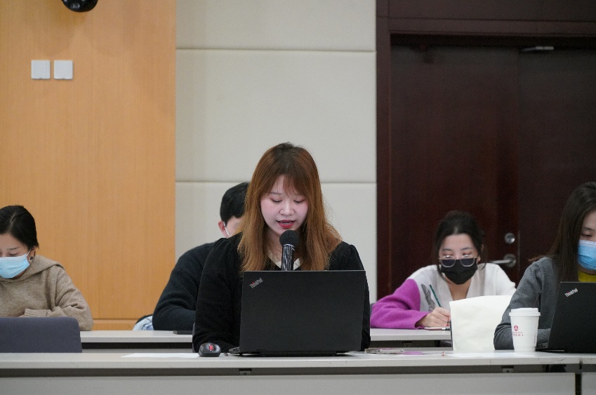 随后,教职工第一党支部预备党员、MBA中心教务助理卢蕊,教职工第六党支部预备党员、国际金融与经济研究中心媒体主管夏之薇,金硕21党支部宣传委员崔文瀚分享了学习心得。