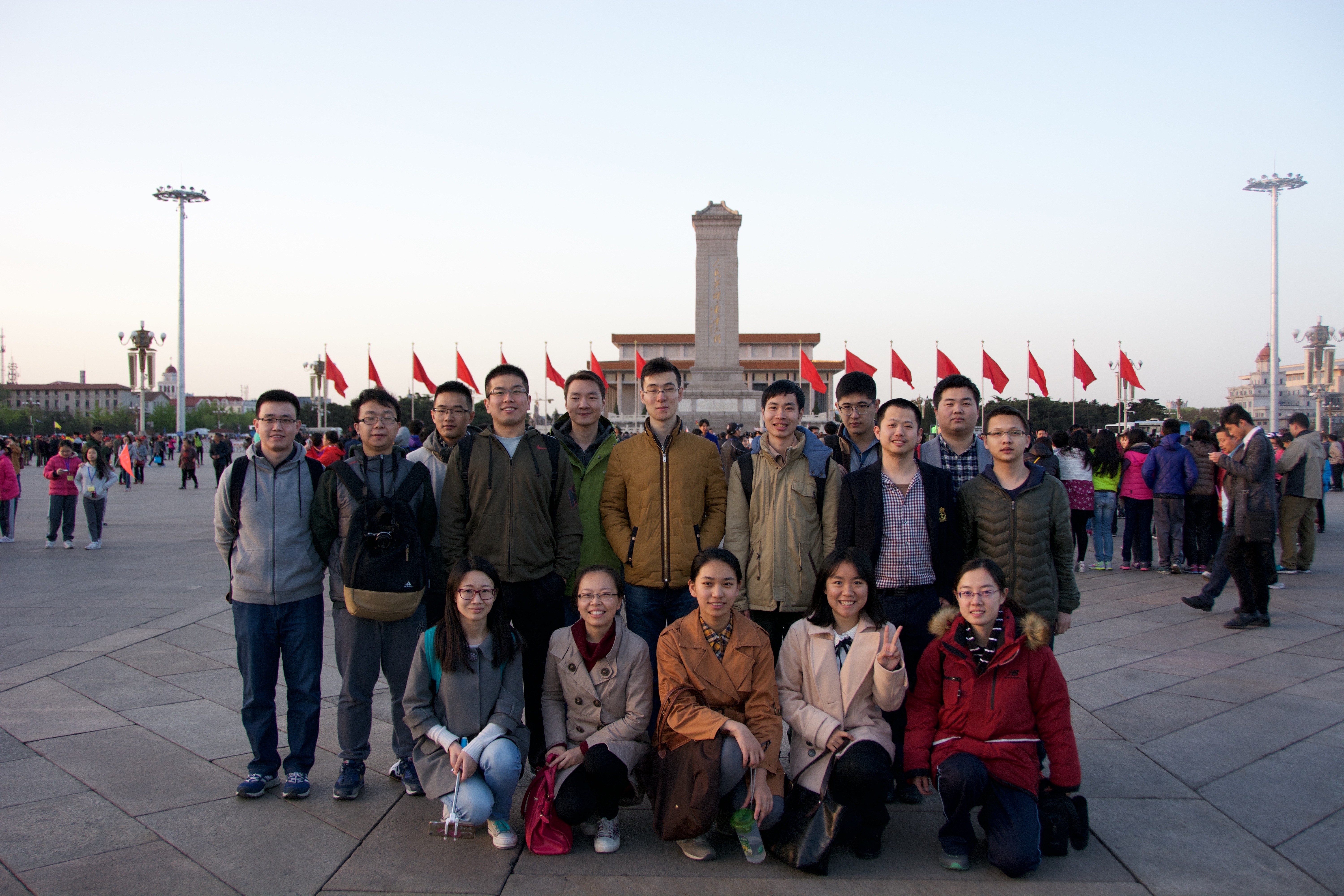 凌晨4点20分,天还未亮,学院大厅早已聚集了金博15和14党支部的同学们。清点人员后,大家搭乘校车前往天安门广场。同学们专注凝望着英姿飒爽的国旗护卫队队员正步向升旗台走去,伴随着雄壮的国歌声,同学们低声唱着国歌,凝视着五星红旗冉冉升起。北京的春晨,本是稍显寒冷,但大家胸中油然而生的自豪感和家国情怀,已然化为一股暖流,鼓舞着在场的每一个人。升旗仪式结束后,大家久久不愿离去,纷纷在广场合影留念。