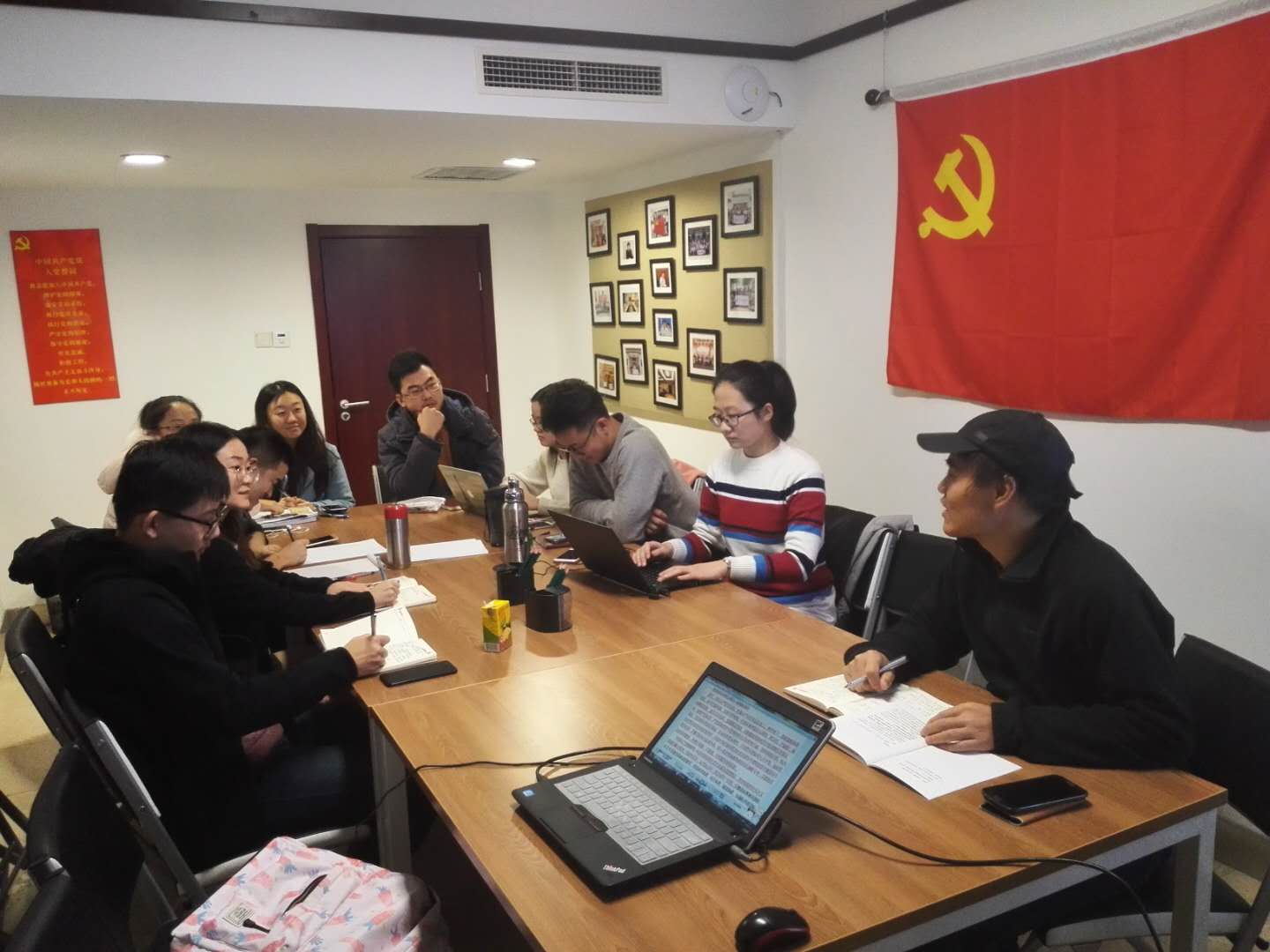 活动结束了,可同学们思想上的激荡却远远没有结束,仍在会议室里讨论报告、分享感悟。不忘初心,牢记使命,高举旗帜,砥砺前行。我们作为新一代的青年力量,更要紧密团结在习近平总书记领导的党中央周围,为实现中华民族伟大复兴的中国梦而不懈奋斗!