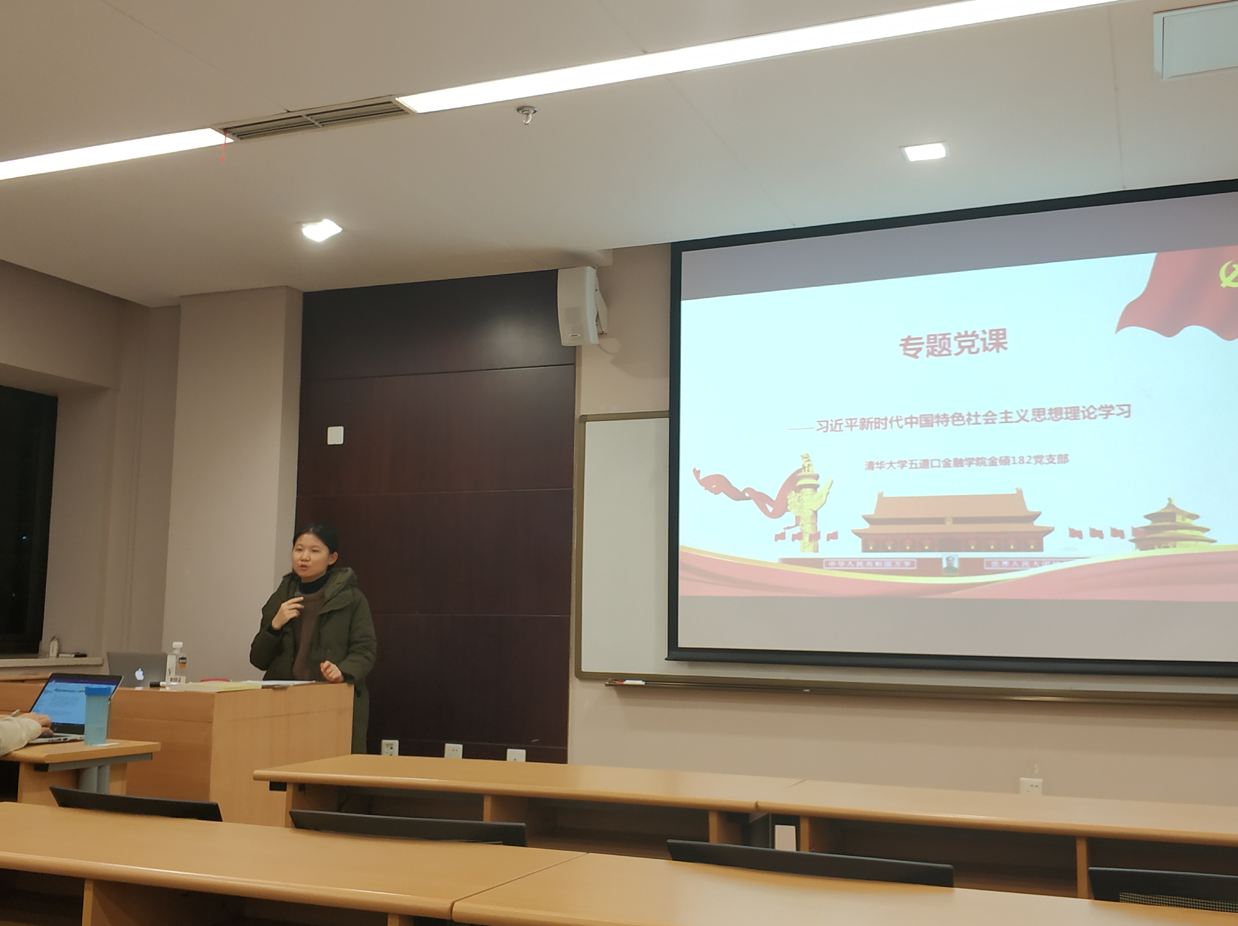 图为蔡冰清进行专题党课讲授