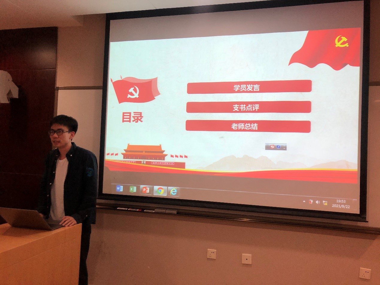 的红色旗帜底色需要我们共同去坚守。于个人而言,入党是一件非常严肃的事情,需要明确对马克思主义的坚定信仰、对社会主义和共产主义的信念,认真对待每一份材料,对自己的入党材料负责;于党组织而言,党员发展是党建工作的重中之重,严把党员队伍“入口关”,严格按照党员标准,成熟一个,发展一个。王老师指出,集中交流讨论环节是同学们对学习心得、对党员标准的认识、自我评价及努力方向再学习的重要机会,希望同学们把握机会,认真反思自己的同时,也发挥朋辈激励作用,互相学习借鉴,提升学习效果。