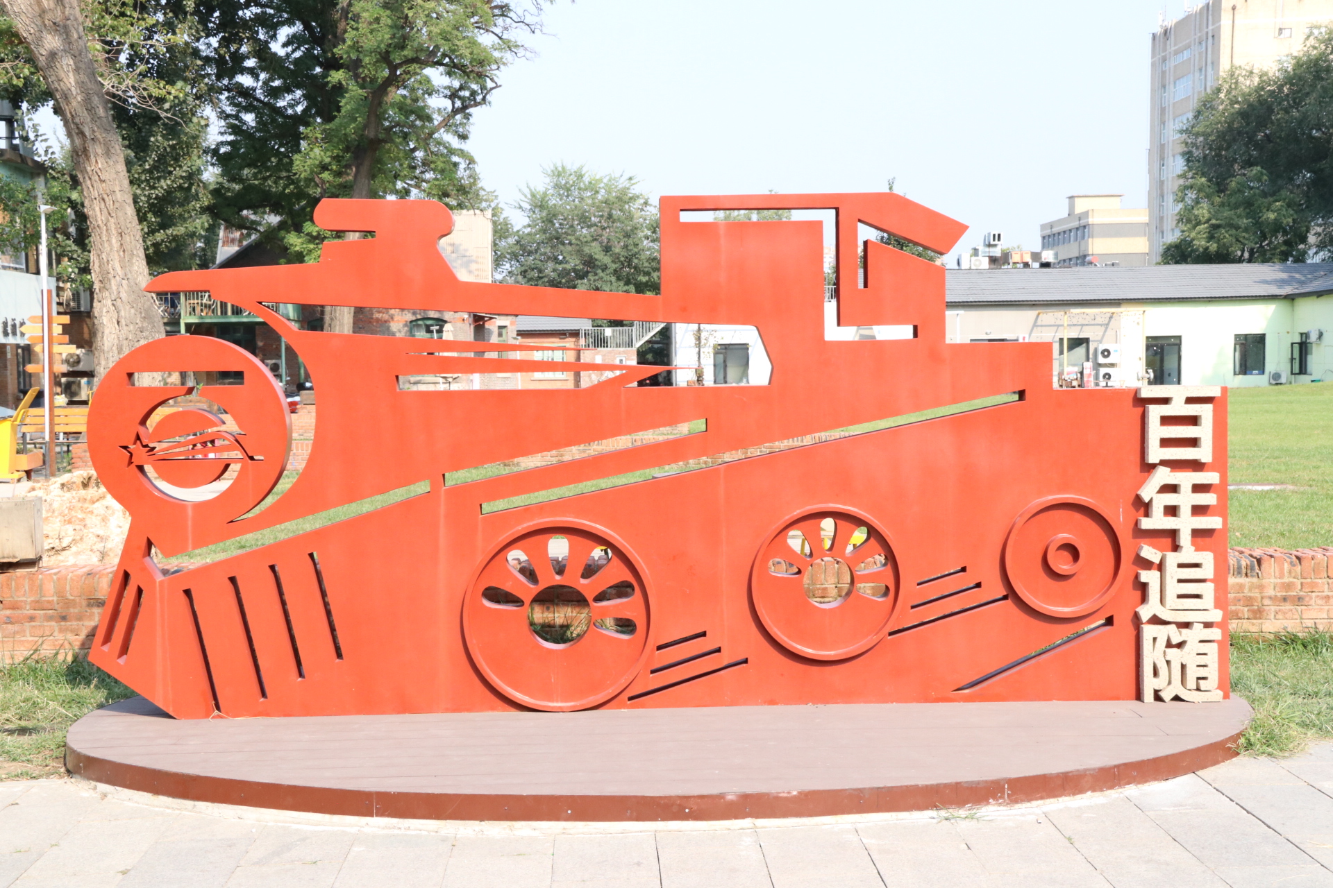 出发前往二七厂1897科创城,在近一个小时的车程后到达目的地。老师和同学们在讲解员的细心介绍和解说下,实地游览了整个科创城,并参观了“百年追随”专题展。