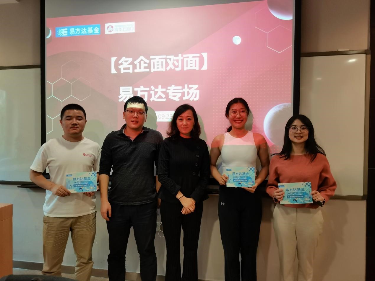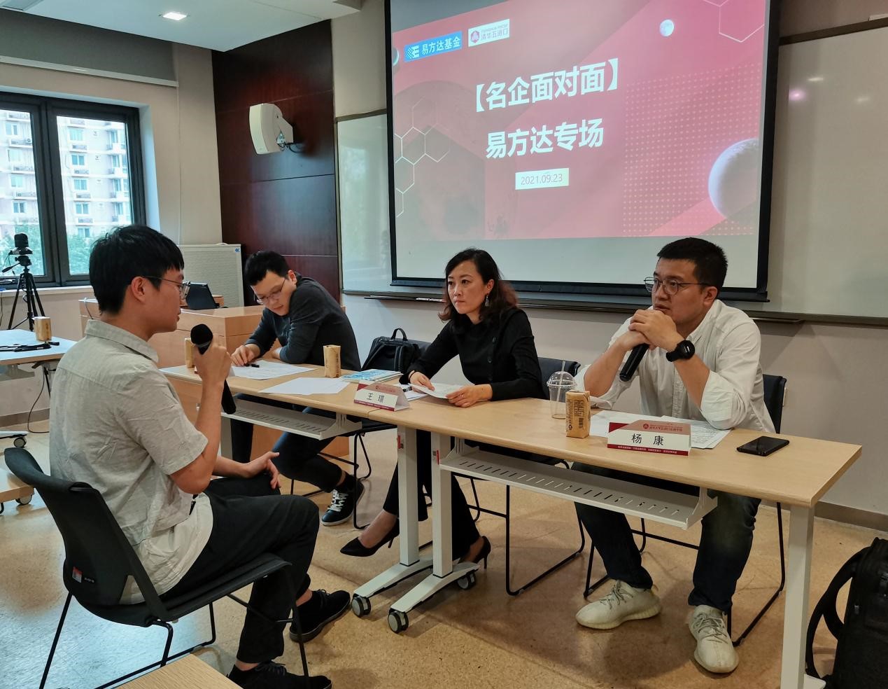 2021年9月23日下午,名企面对面——易方达专场就业宣讲会在学院1-301举办。到场嘉宾有易方达基金多资产投资部基金经理杨康 、易方达基金固定收益策略基金经理胡文伯及易方达HR王璟。
