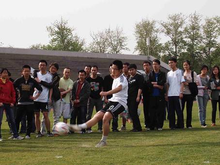 在团体项目方面,同学们参加了10*10次投篮与足球踢准两个项目的比赛。2010级的王志、王梅以及2011级的邓文龙、徐琨、王石千、王澄、王雪峰、陈书炎、陆晓锋、仲鹏敏十位同学参加了10*10次投篮的比赛,十位同学依次登场,表现可圈可点,场边同学们叫好声不绝。篮球比赛结束后,2011级王跃、张锐、赵冬华、王文科、陈玉倩同学参加了足球踢准比赛,在绿茵上英姿尽展、频频命中,在场上场下一片欢笑声中完成了比赛。