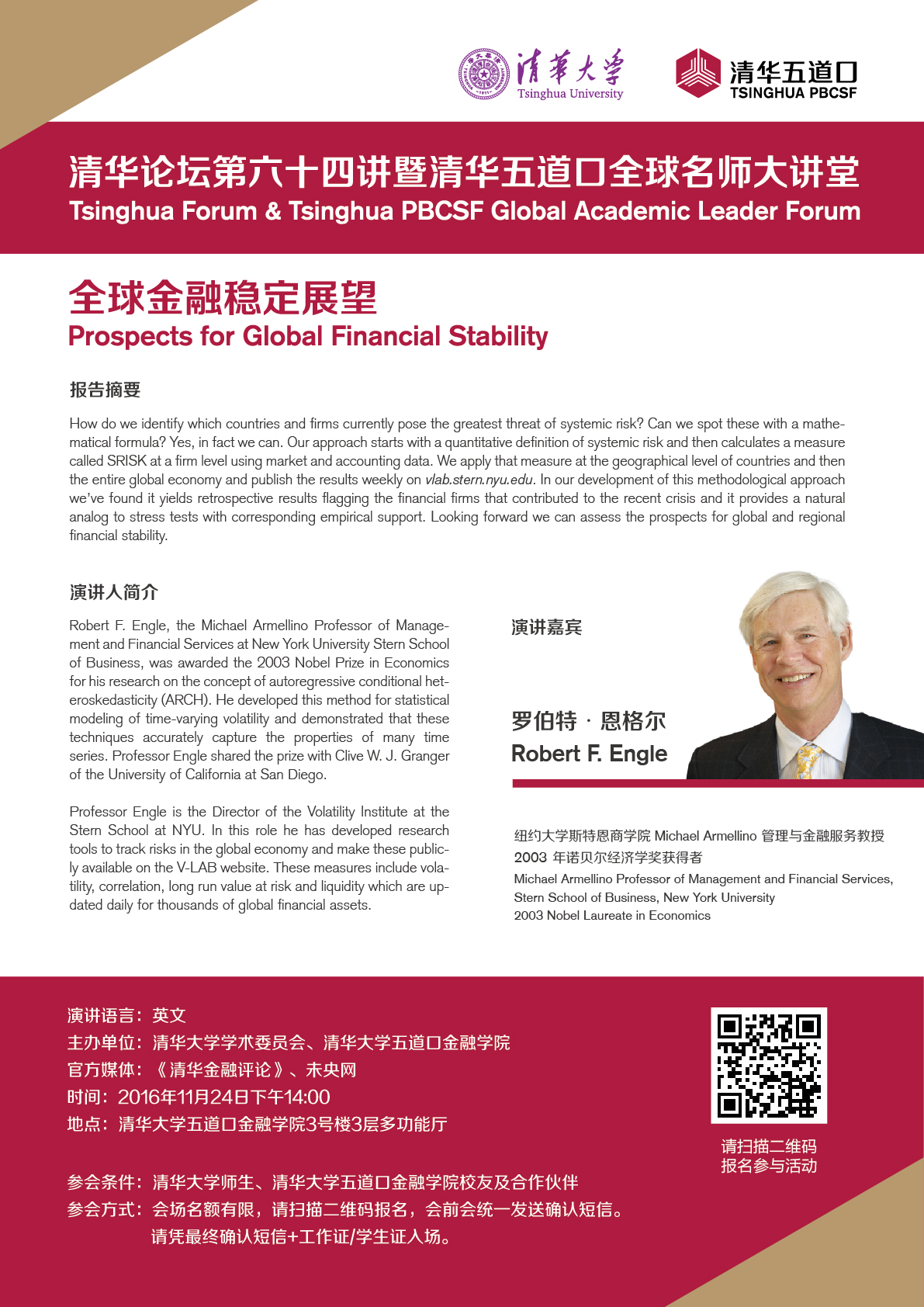【清华论坛暨清华五道口全球名师大讲堂】诺奖得主Robert F. Engle:全球金融稳定展望