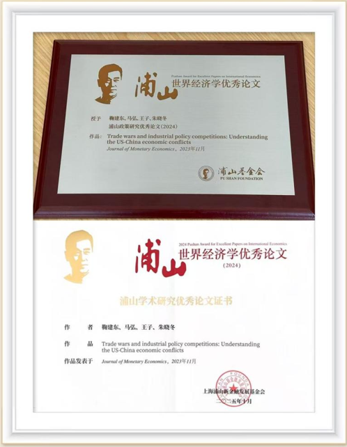 经济管理学院教授马弘、香港浸会大学工商管理学院副教授王子、香港大学经管学院教授朱晓冬合著发表的论文《贸易战与产业政策竞争:理解中美经贸冲突》(Trade Wars and Industrial Policy Competition: Understanding the US-China Economic Conflicts)荣获“浦山政策研究优秀论文(2024)”,该论文于2024年在著名国际期刊《货币经济学期刊》(Journal of Monetary Economics)发表。