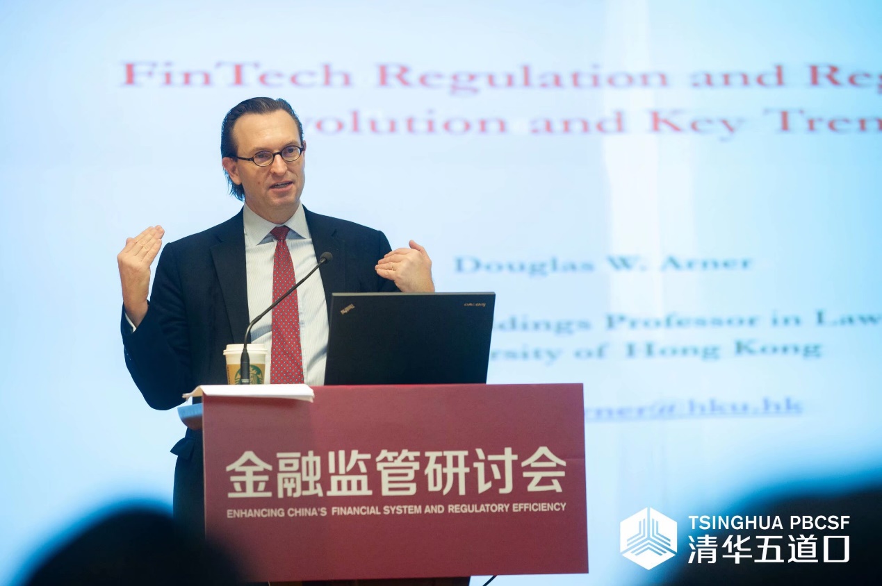 Arner)以“金融科技监管”为主题进行了演讲。他围绕金融科技(FinTech)对于监管的挑战、监管应对的类型、监管科技(RegTech)、金融基础设施的设计以及未来合作的机遇和挑战等话题与大家进行了深入探讨。道格拉斯·阿纳尔强调,区块链是一个安全的、透明的、无法篡改、不可逆的信息系统,在此基础上可以构建一系列的有关的交易结构。另外,科技金融(TechFin)是一个重要机遇,但对于垄断公司的监管以及网络安全是重大挑战。