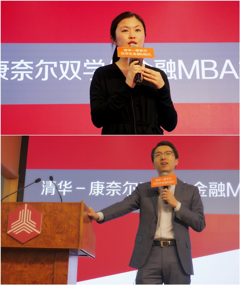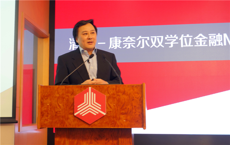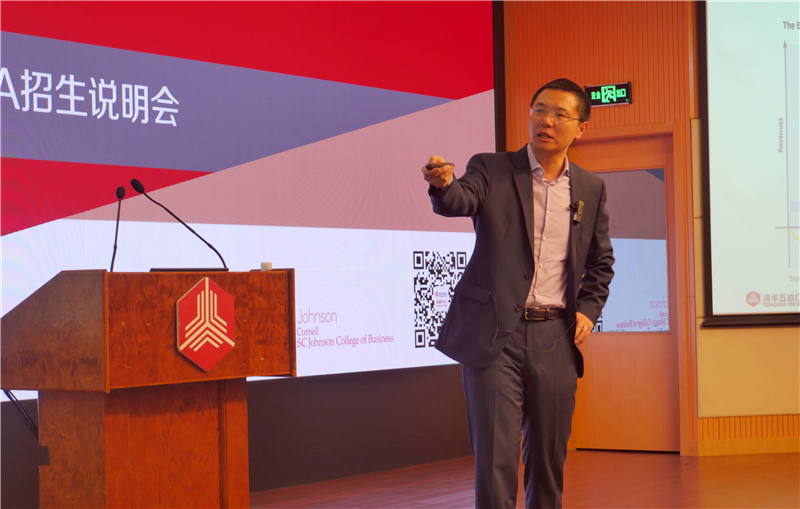 康奈尔大学约翰逊管理学院黄明教授进行了项目介绍。黄明诙谐幽默的演讲方式让同学们对清华-康奈尔双学位金融MBA项目有了更全面的了解。黄明强调,本项目在中国乃至世界上非常独特,既保持了清华五道口传统、借助清华五道口业界与学界结合的经验,又继承了百年清华教育资源与康奈尔百年教学和管理经验,在校友、业界、教学等方面的资源都是双倍地投入和产出。
