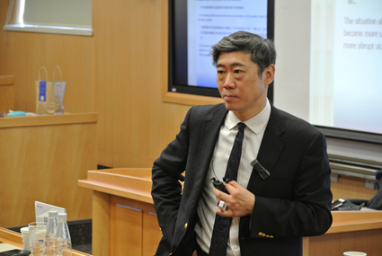 中国与世界经济研究中心(CCWE)主任李稻葵等授课教授为东南亚首期班同学们授课。 朱民以“一个新的充满挑战的世界”为题,以2008年的全球金融危机为例,从雷曼兄弟的破产,到华尔街、整个美国、甚至全球性的金融危机,并导致严重的失业问题谈起,强调世界的“高关联度”(Hyper connectivity),朱民展示了用GDP、贸易额等作为衡量指标时,与世界地图完全不同的世界版图,以此说明疆域有时并不如经济实力重要。