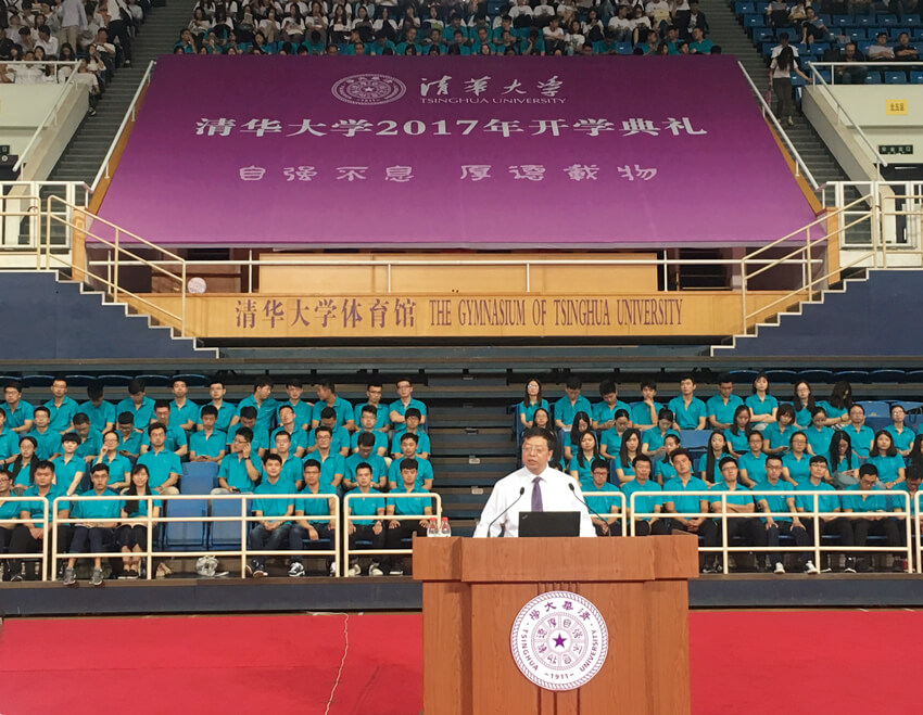 8月29日,7000余名来自国内外的研究生共同参加了在综合体育馆举办的2017级研究生开学典礼。典礼上,校长邱勇院士代表全体师生对每一位来到清华园的新生表示了热烈欢迎,邱勇在讲话中强调要做肩负使命的清华人,激励同学们秉持清华的优良治学传统和深厚人文精神,在为学和为人的过程中开创美好未来。此外,环境学院院长贺克斌院士代表全体教师发言,校研究生会主席、土水学院博士生苏舒和社科学院博士生荆文锴分别代表全体研究生和新生发言。从发言中,同学们感受到成为一名清华人的社会责任与历史使命,同时也对百年名校清华一直秉持的“自强不息、厚德载物”校训和“行胜于言”的校风有了深刻切实的体会。