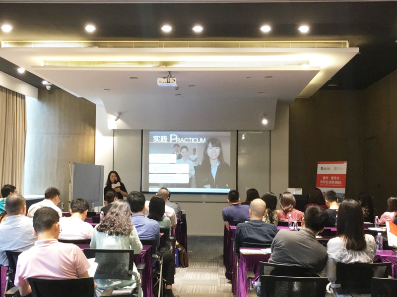随后的同学分享环节,在上海工作的2016级朱雅琦与在座同学们分享了刚刚于5月中旬结束的美国集中教学模块的丰富收获与感想,并就外地同学普遍关心的如何平衡并克服异地上课等问题分享了个人经验。随后,2017级即将入学的慕丽洁向在座的同学们分享了她的个人经历以及备考心得,她精彩的分享进一步坚定了同学们报考本项目的决心。