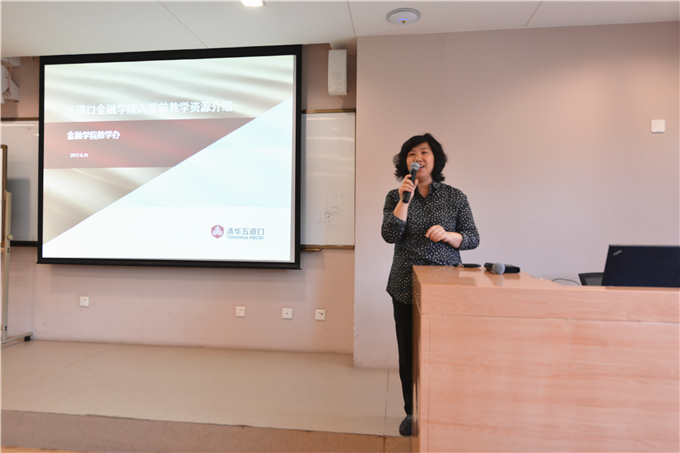 (图为北京国家会计学院研究生部主任薛敏为新生们介绍国家会计学院情况)