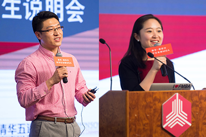 上海招生说明会邀请的是2015级杨婵和2017级预录取的谈翔进行分享。杨婵分享了自己入读项目两年间的学习心得。作为上海往返北京奔波攻读项目的学生之一,她觉得求学虽然辛苦,但是学有所值,非常充实。谈翔认为,选择MBA就是选择品牌,清华和康奈尔就是他能想到的最有力、最有价值的品牌。
