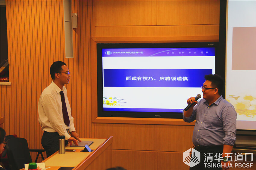 与此同时,企业也安排了刚刚经历过招聘流程的新入职员工为大家分享网申和面试经验。许多企业特意安排了数位学院的校友与大家进行交流探讨。学长学姐们的第一手信息帮助同学更好地明晰规划、未雨绸缪,选择适合自己的职业路径。企业宣讲会均在会后设立答疑环节,鼓励同学们与各单位招聘团队积极交流,促进对企业的了解。