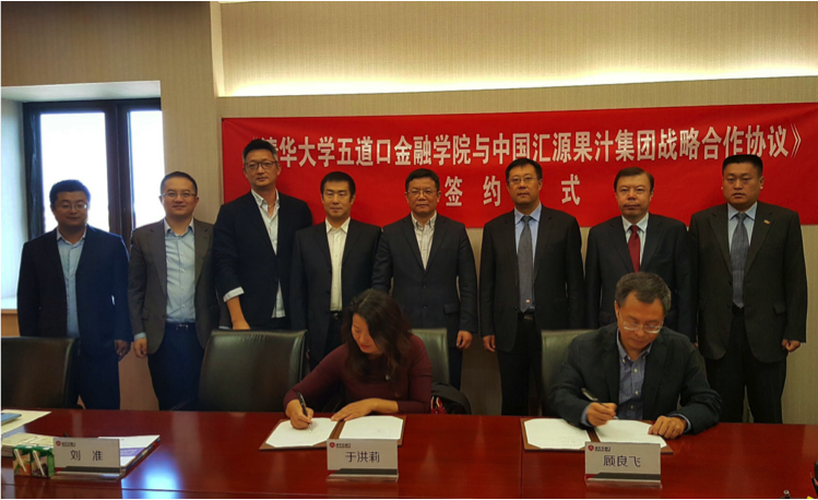 与中国汇源果汁集团战略合作协议签约仪式在学院举行。学院党委书记顾良飞与中国汇源果汁集团有限公司执行总裁兼党委书记于洪莉代表双方签署《战略合作协议》。学院常务副院长廖理,中国汇源果汁集团有限公司首席运营官崔现国,汇源四季本源总经理刘准(学院EMBA校友),上海日升融资租赁有限公司总裁孔维静(学院EMBA及GFD校友),学院行政办主任何晓春等双方嘉宾见证了签约仪式。签约仪式由学院战略合作与发展办主任高皓主持。