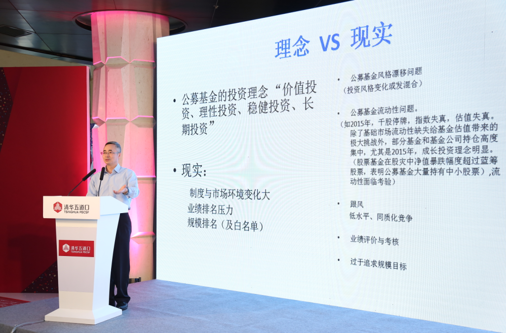 刘立达的演讲围绕公募基金的问题与建议展开。他用丰富的数据展示了中国公募基金市场发展的基本情况,并进一步分析了股东与持有人、理想与现实之间的冲,以及社会环境影响所造成的问题。最后刘立达提出了应大力发展股票型基金,以解决市场上优质资本稀缺的问题。