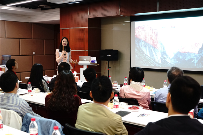 EMBA 2015春季班学生,铜板街集团创始人、董事长兼CEO何俊首先介绍了中国金融创新领域的格局,以及公司的发展情况与业务模式。他指出,铜板街集团从理财APP起步,上线三年来累积交易量突破900亿,注册人数超850万。铜板街集团正式上线了互联网金融资产交易信息服务平台铜金所,旨在为资产端和资金端客户提供完善的金融基础设施服务。