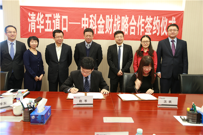 随后,学院党委副书记、副院长赵岑及中科金财总裁沈飒代表双方在战略合作协议上签字。根据协议,中科金财十年内向学院捐赠1000万元,用于支持学院在互联网金融领域的研究。中科金财高级副总裁杨承宏,首席经济学家杨继,董事长助理宁园,学院院长助理袁源、王京伟等双方代表出席了签约仪式,会议由学院战略合作与发展办主任高皓主持。