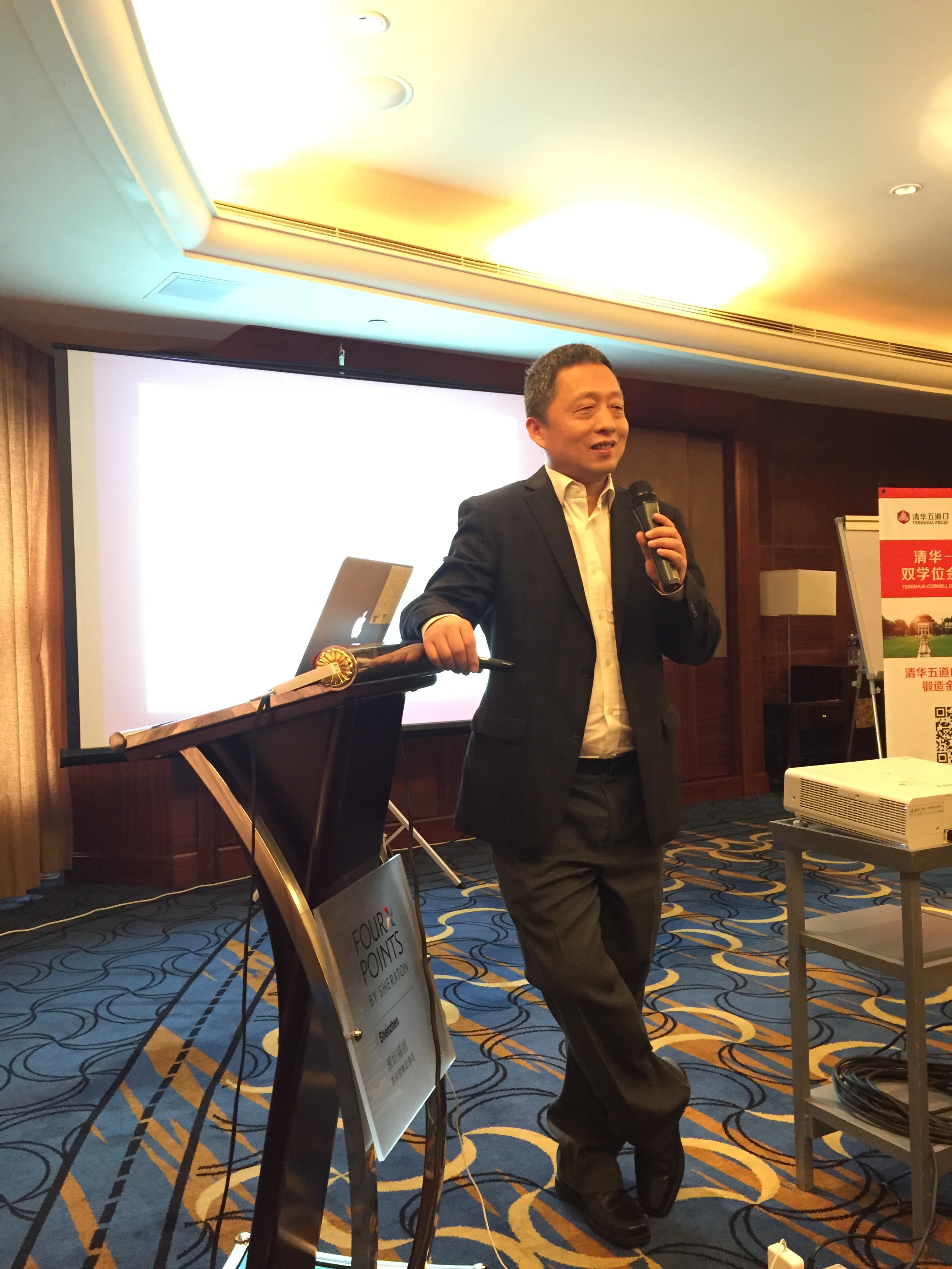 EMBA一期班的校友,曾在摩根大通等多家海外知名金融机构担任要职、现任深圳菁英时代基金管理股份管理有限公司高级总裁罗志鹏作了《从供给侧改革看大中国资产管理市场的机会与挑战》的主题分享。罗志鹏就自身的职业发展,留学美国的深切体会,创业时期的体验,以及当今中国金融市场的现状与同学们进行了分享与互动。