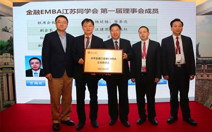 随后,他宣布江苏同学会第一届理事名单,并为同学会授牌。两位金融EMBA 2014春季班同学——洋河股份名誉董事长杨廷栋与综艺集团董事长昝圣达当选为江苏同学会首届联席会长,金融EMBA 2012级同学、达广国际有限公司董事长吴新当选首届秘书长。