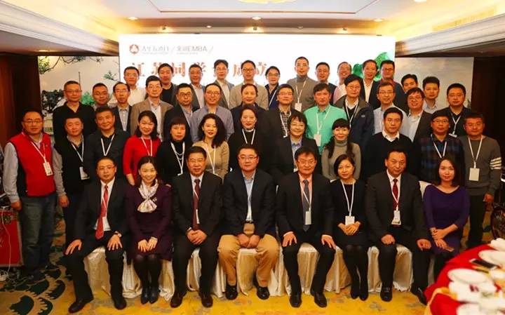 王京伟在致辞中回顾了江苏校友从首期班仅仅一位到如今20余位校友的艰辛发展历程,并感谢江苏校友为金融EMBA发展所作出的重要贡献。他介绍,金融EMBA项目开办以来已经培养出了600余名精英学子,遍布31个省市地区。江苏同学会是继2015年上海、河南、浙江同学会成立之后的第四个地方同学会,江苏同学会已拥有来自南京、南通、无锡、常州、苏州、扬州、宿迁等13个城市的20位同学,均是江苏及长三角地区杰出企业家、金融家的代表。江苏同学会的成立对于团结江苏同学,并以此为纽带为全国范围的校友搭建一个广泛而有效的交流沟通平台,具有重要意义。