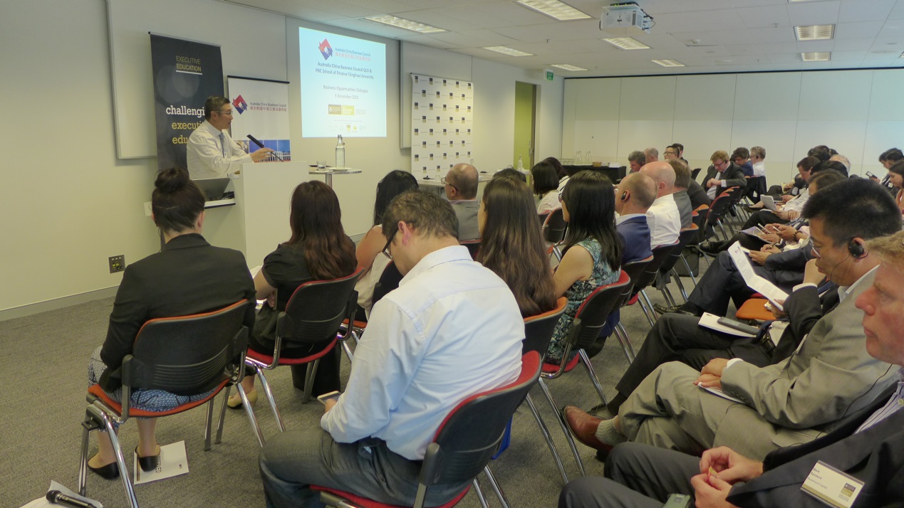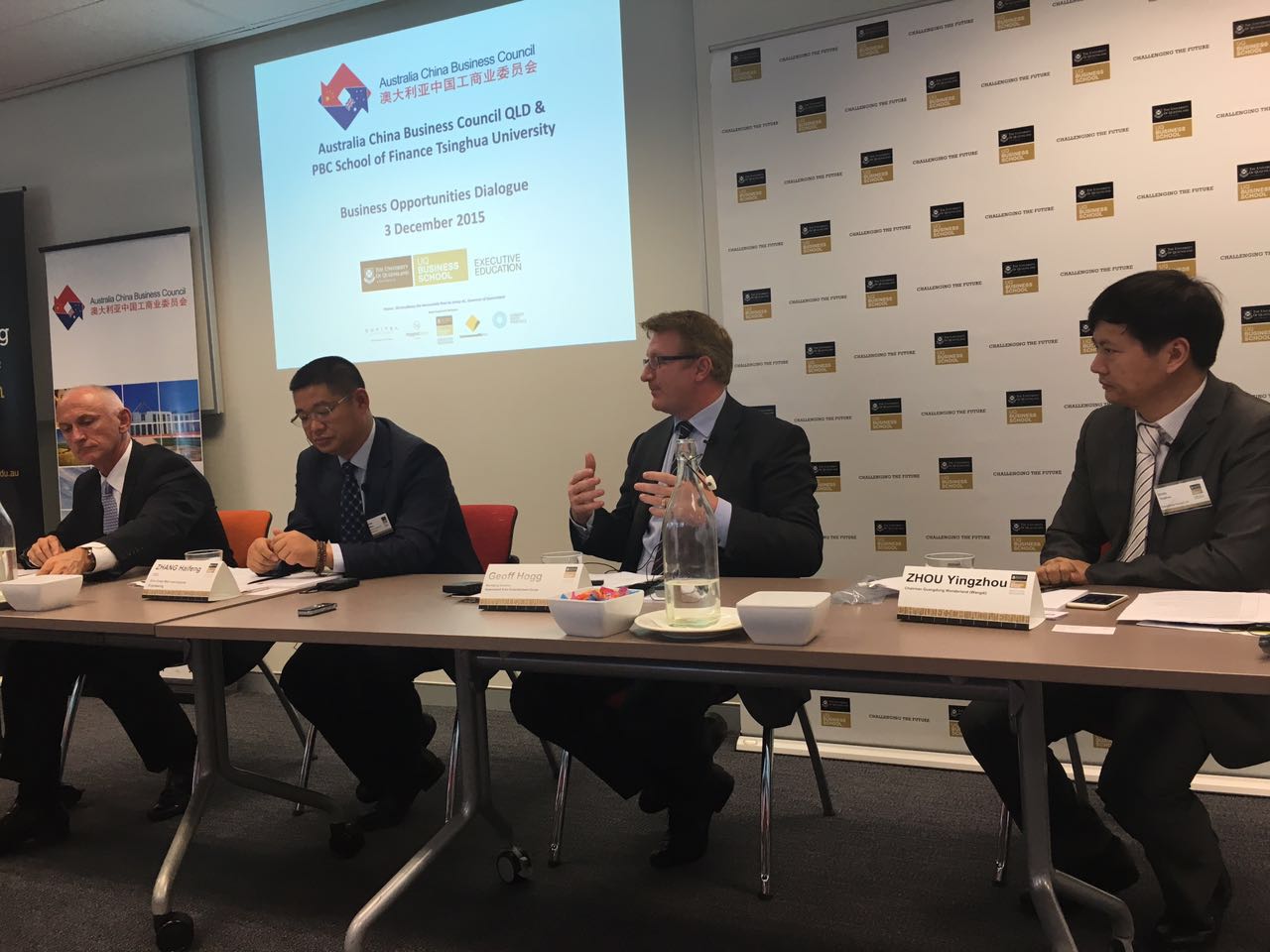 全球金融GFD首期班学生12月3日与澳大利亚中国工商业委员会( ACBC)在澳大利亚昆士兰大学商学院联合举行题为“关于中国商业机会的对话”的论坛,论坛由ACBC首席执行官Nussara