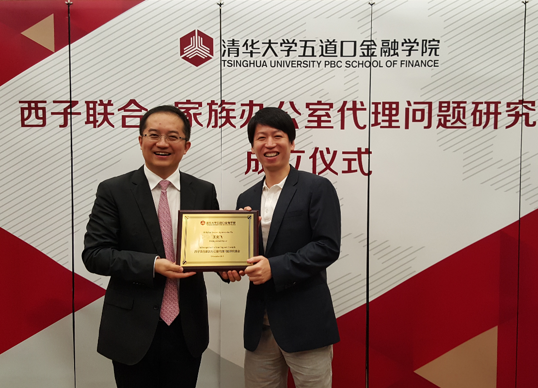 在同学们的见证下,课程期间还举行了“清华五道口-西子联合/家族办公室代理问题研究基金”的成立仪式,全球家族企业课程同学、西子航空董事长王克飞先生捐资支持学院在家族办公室领域进行研究,尤其是对家族财富管理中的委托代理问题进行深入分析,通过机制设计等方式解决家族办公室中广泛存在的多种利益冲突。