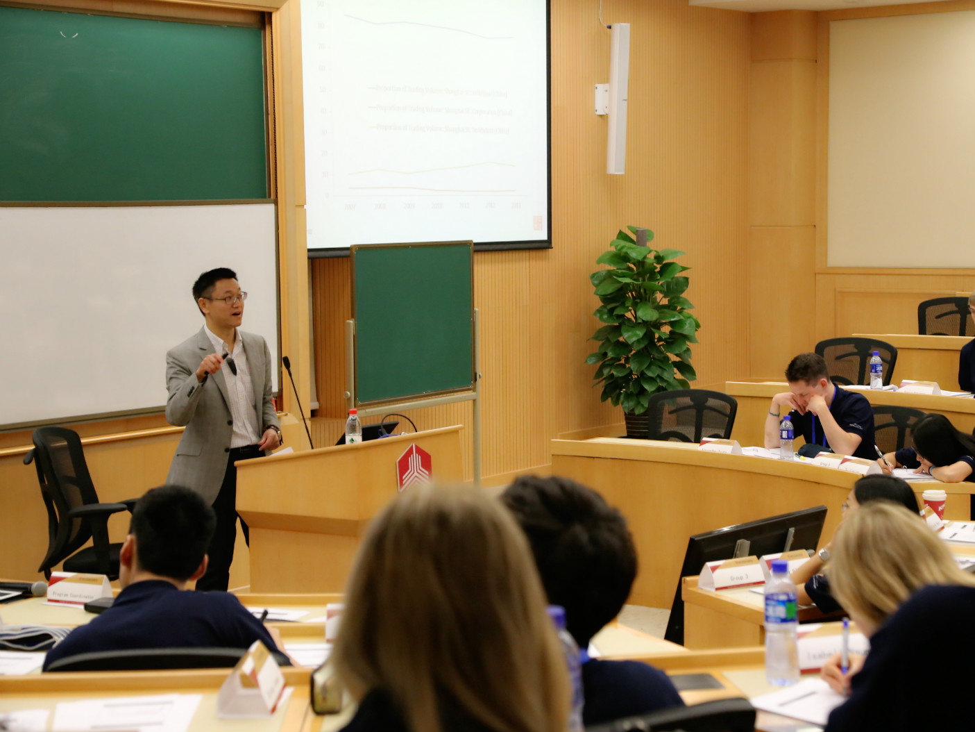 开营第一天,中信证券研究部首席国际宏观分析师张文朗为各国同学带来了题为“China’s Capital Markets”(中国资本市场)的精彩讲座,为同学们详细地介绍了中国的债券市场、股票市场的特点及构成,以及中国的经济周期和金融周期等内容,引起了同学们浓厚的兴趣和热烈的讨论,课堂气氛活跃,师生间互动频繁。