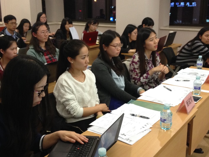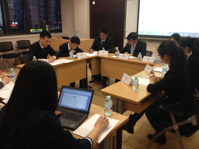 活动以模拟面试无领导小组讨论开始,共有七位同学参与其中。同学们针对“多元化经营与专业化经营哪个更好”为论题,进行了热烈的讨论。最终七位同学达成了共识,将业务拓展分为三个类别,分别是纵向的产业链整合、横向的同业兼并、以及横向的业务多元化拓展。在论述的过程中,同学们踊跃发言,根据自己的积累给出了详实的论据。中金公司人力资源部的三位面试官针对各位同学在面试过程中的表现进行了逐一点评。专家们肯定了大家作为一个团队的整体表现,并提出了三点改进意见。