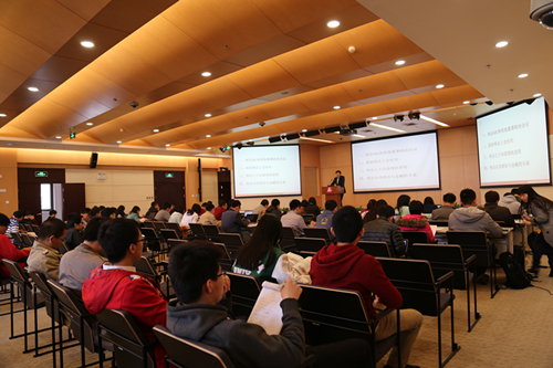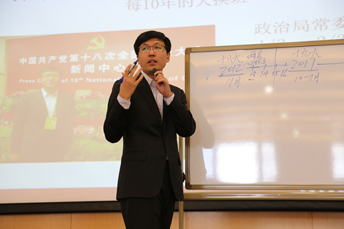 “金媒班”首期校友张庆源回到学院,为学生党员、入党积极分子带来一场关于“治国理政和全面改革的两会节点”的专题报告。