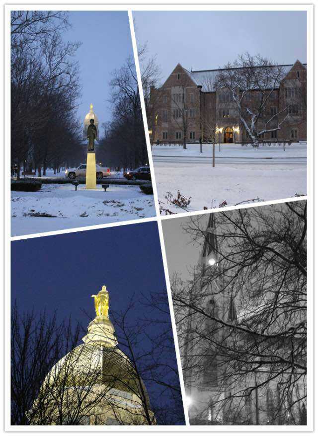 Indiana)的校园。徜徉在白雪覆盖的哥特式建筑风格校园内,初到圣母大学的同学们忘却舟车劳顿,被这片充满异域风情的校园所吸引。