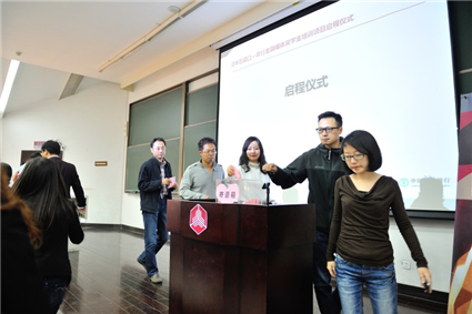 常务副院长廖理、金媒项目领导小组成员及首期项目学员代表出席仪式并发言。启程仪式由学院党委副书记、金媒项目领导小组组长赵岑主持。