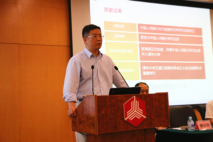 图为人民银行研究局局长陆磊致辞