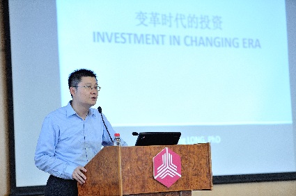 交银施罗德基金管理有限公司量化投资部总经理龙向东博士为同学们带来了“Investment in Changing Era”(变革时代的投资)的讲座。他就人口结构的变化以及由此带来的由住房需求驱动向服务需求驱动经济模式的转变做了阐释,还从投资哲学、投资方法论、投资分析框架体系三个方面与大家分享了他对投资的理解,并结合现实事例向大家介绍了自上而下和自下而上两种投资哲学。