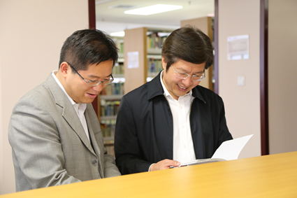 聂风华陪同高云龙一行参观了校园、多功能教室及图书馆,并简要介绍了学院概况。