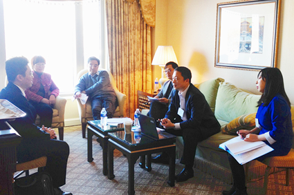 图为学院专家组与国外学者亲切交谈