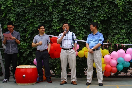 图为廖理宣布“趣味运动会”开始