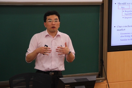 边江泽教授和大家分享了自己与余家林教授共同研究的论文"Should We Cancel Clearly Erroneous Orders"。他指出文章主要研究的问题,即资本市场监管者是否应该取消明显错误的订单,并以2010年5月6日美国股市的闪电暴跌为例,初步分析了交易取消制度对投资者,尤其是高频交易者的递单意愿和市场流动性的影响。基于目前的研究发现,边江泽给出了自己的观点:市场监管者不应该撤销明显错误的订单,因为交易取消制度会打击投资者的递单意愿和降低市场流动性从而影响股票市场的发展。(截至目前,该工作论文仍在进行中)