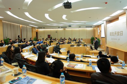 本次开放日特意安排在装修一新的EMBA授课教室举行,比邻正在上课的首期班同学。简约明快的装修风格,浓厚的学术氛围,让报考者提前体会金融EMBA的学习环境。