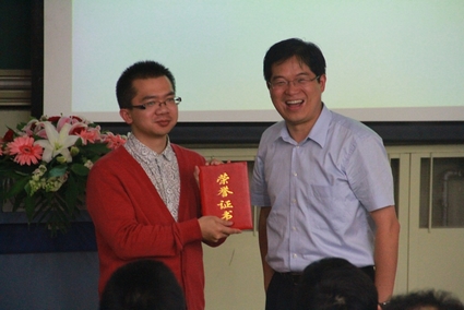 图为党委书记聂风华为同学颁奖
