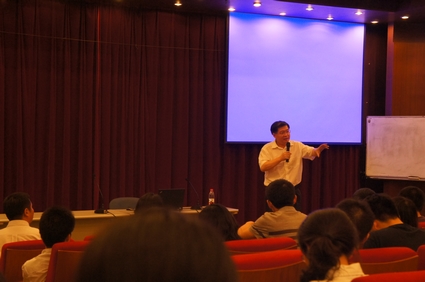 讲座过程中,汪钦师兄以“中小公募基金生态和生存之道”为主题,分享了他对基金业的认识以及他的从业经历。他认为基金经理应该做到投资、研究、销售一体化,并通过案例形象地为同学们讲解了投资分析、投资决策的过程。