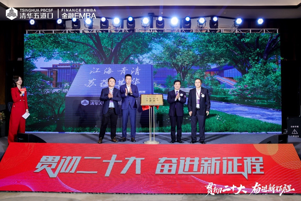 通州金融发展与人才培养基地建设基金”。“十年树木,百年树人”,同学会精心设计了“江海青清,苏蕴其华”的铭牌,把“江苏”和“清华”蕴含其中,寓意江苏校友与母校长久联结,共同发展。