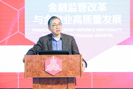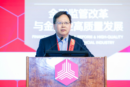 陈道富以“推动金融高质量发展”为题发表主题演讲。他认为,金融业要实现高质量发展,应该在合理治理和正当秩序下有利于微观主体成长和市场发展,满足国家利益和国家战略,助推中国式现代化,解决不平衡、不充分的问题。他指出,中国金融体系需要同时完成三方面的任务:一是为国家战略、产业布局、高质量发展提供金融支撑;二是要反应、吸收、消化各类冲击,保证一个稳健柔韧的金融体系;三是要有市场化、内嵌式、赋能式的金融生态。他强调,未来金融业需要注意跟科技和产业形成良性循环,提升多层次资本市场功能,实现中小银行结构性的调整,强化中介机构连接金融和实体经济的功能。
