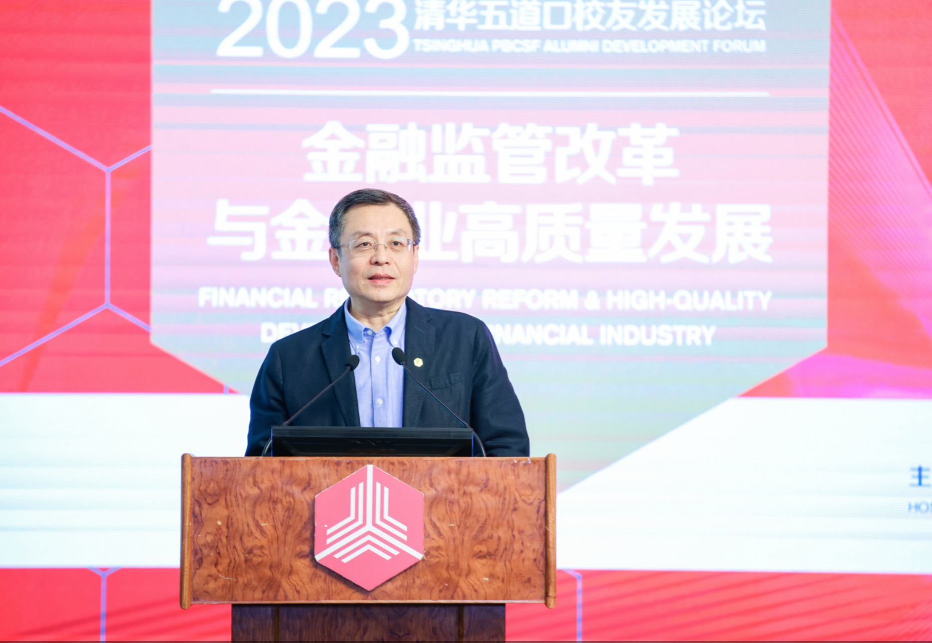 2023年4月27日,清华五道口校友发展论坛(第四届)暨校友终身学习日(第二期)在北京隆重举行。本届论坛以“金融监管改革与金融业高质量发展”为主题,邀请广大校友师生齐聚一堂,采用闭门方式就中国金融改革稳定发展进行深度研讨。本届论坛由清华五道口校友会主办,清华五道口校友发展研究中心提供学术支持,清华五道口校友办承办,《清华金融评论》为官方媒体。论坛分为上午和下午两个半场,上午是全体大会,下午是五场平行论坛。学院领导、各部门负责人,硕士、博士、MBA、EMBA、GSFD和高管教育等各项目校友师生以及特邀嘉宾共300余人参加。