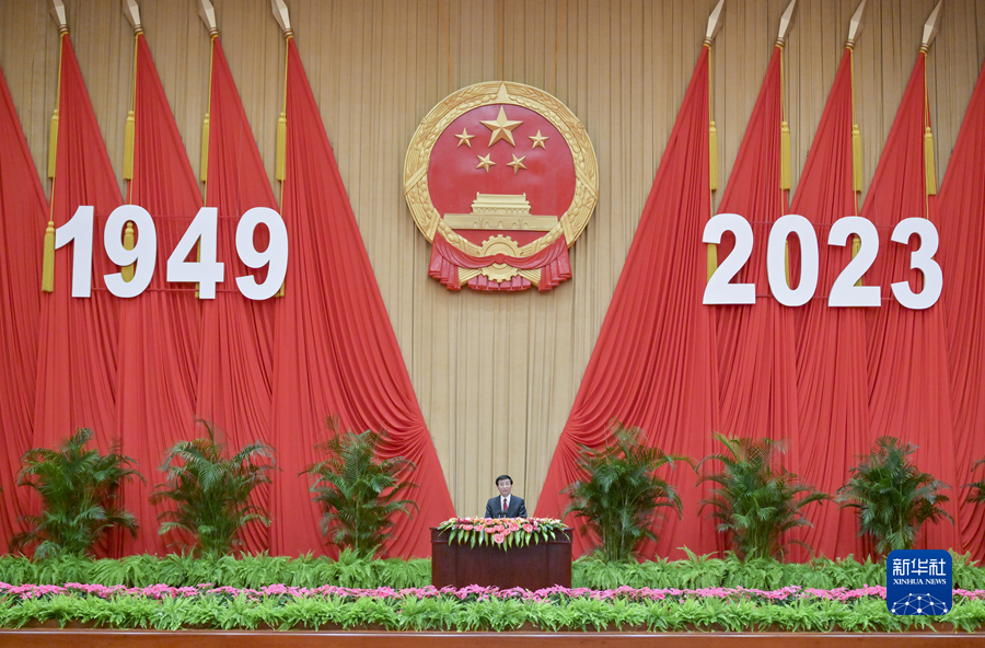 王沪宁表示,新中国成立74年来,中国共产党团结带领全国各族人民同心同德、艰苦奋斗,成功开辟和发展了中国特色社会主义道路,中华民族迎来了从站起来、富起来到强起来的伟大飞跃。进入新时代,在以习近平同志为核心的中共中央坚强领导下,党和国家事业取得历史性成就、发生历史性变革,为实现中华民族伟大复兴提供了更为完善的制度保证、更为坚实的物质基础、更为主动的精神力量。
