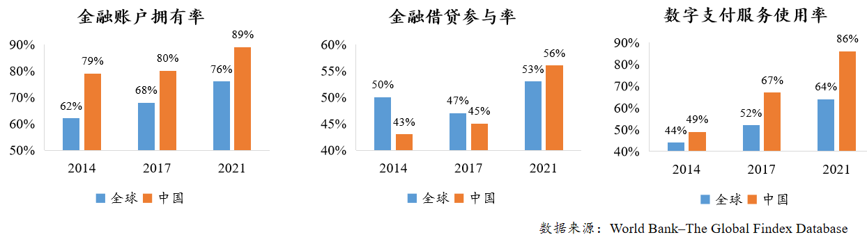 随后,张晓燕对中国普惠金融发展的现状做出总结。中国普惠金融处于全球领先的地位,已进入“数字普惠时代”。2021年我国金融账户拥有率89%,金融借贷参与率56%,数字支付服务使用率86%,多项指标均领先全球。此外,数字人民币SIM卡硬钱包等产品的推出,显示了中国移动支付正在进一步创新。
