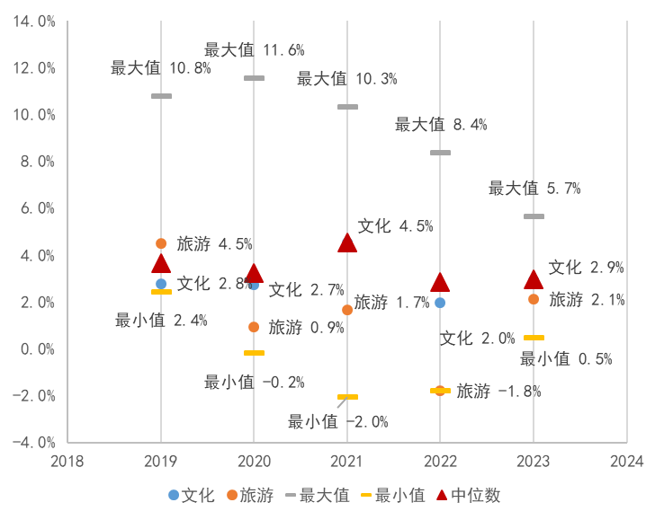 图2:2019-2023年A股上市文化与旅游企业ROA情况