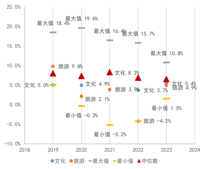 图1:2019-2023年A股上市文化与旅游企业ROE情况