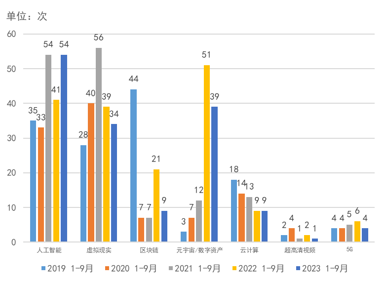 图6:2019-2023年前三季度数字文化产业重点赛道投融资情况